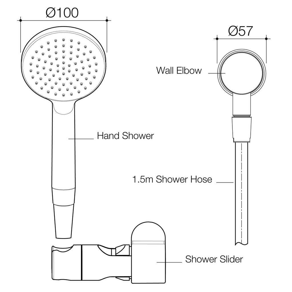 - Includes shower head slider, intended for use with Caroma Care Support Grab Rails